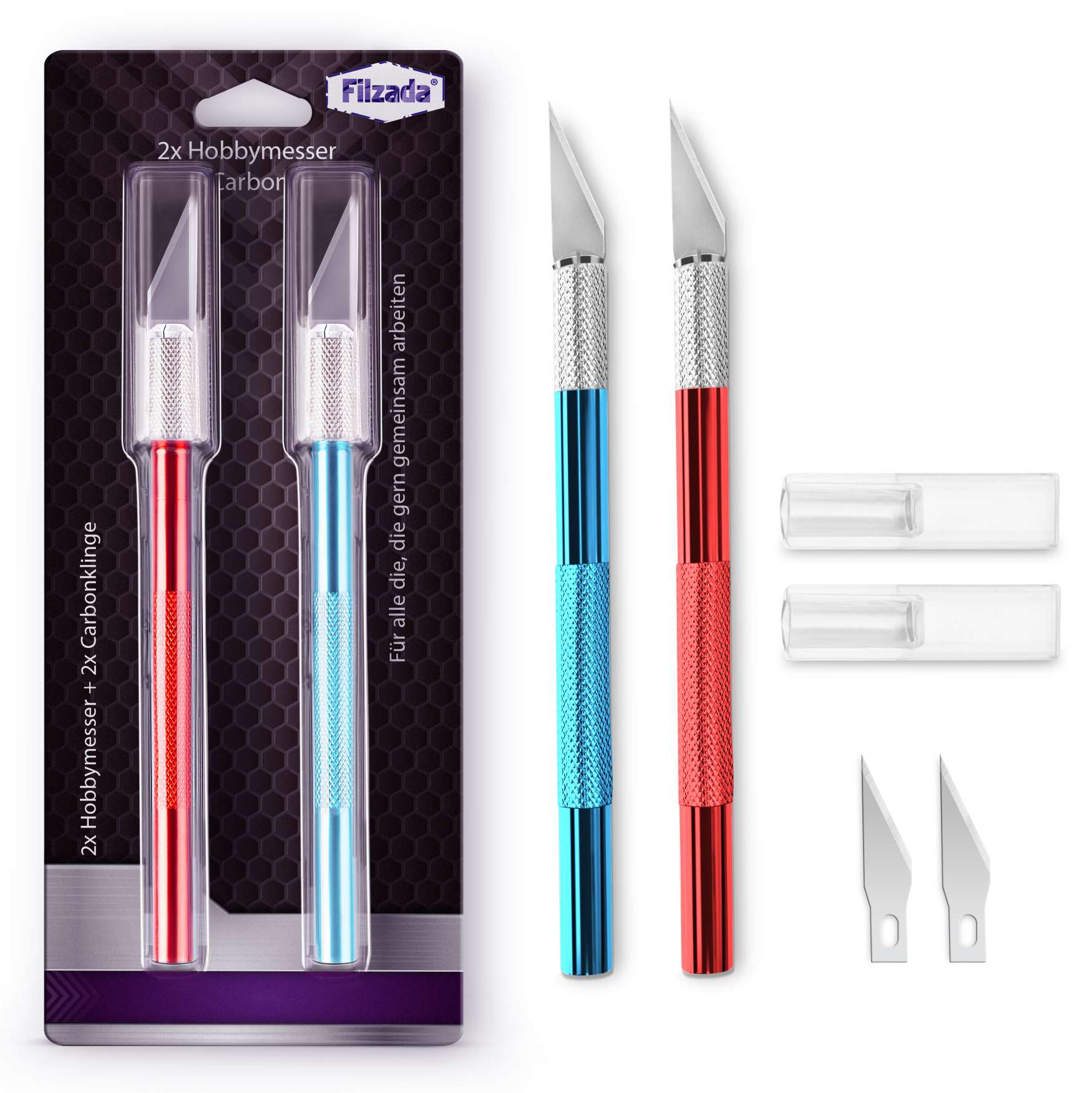 Skalpell / Bastelmesser 2er Set - Rot und Blau - Von Filzada®