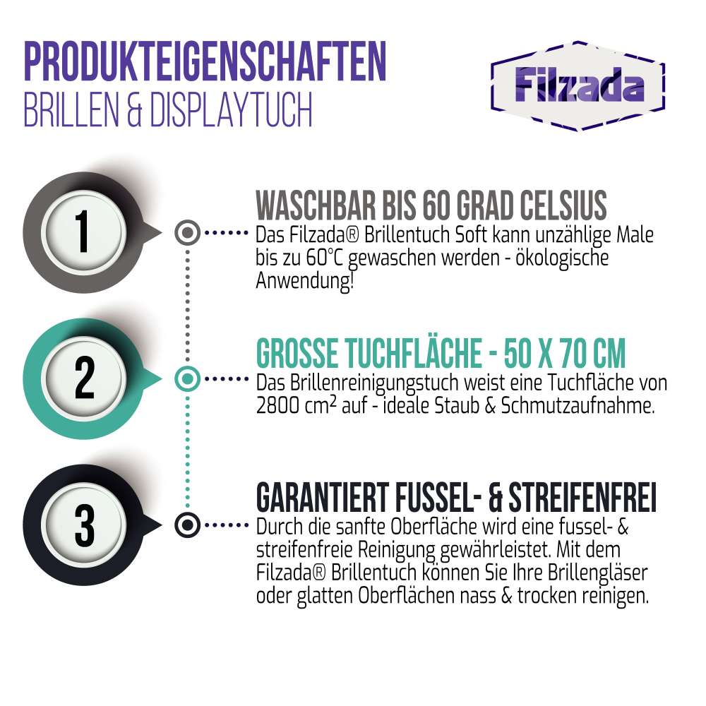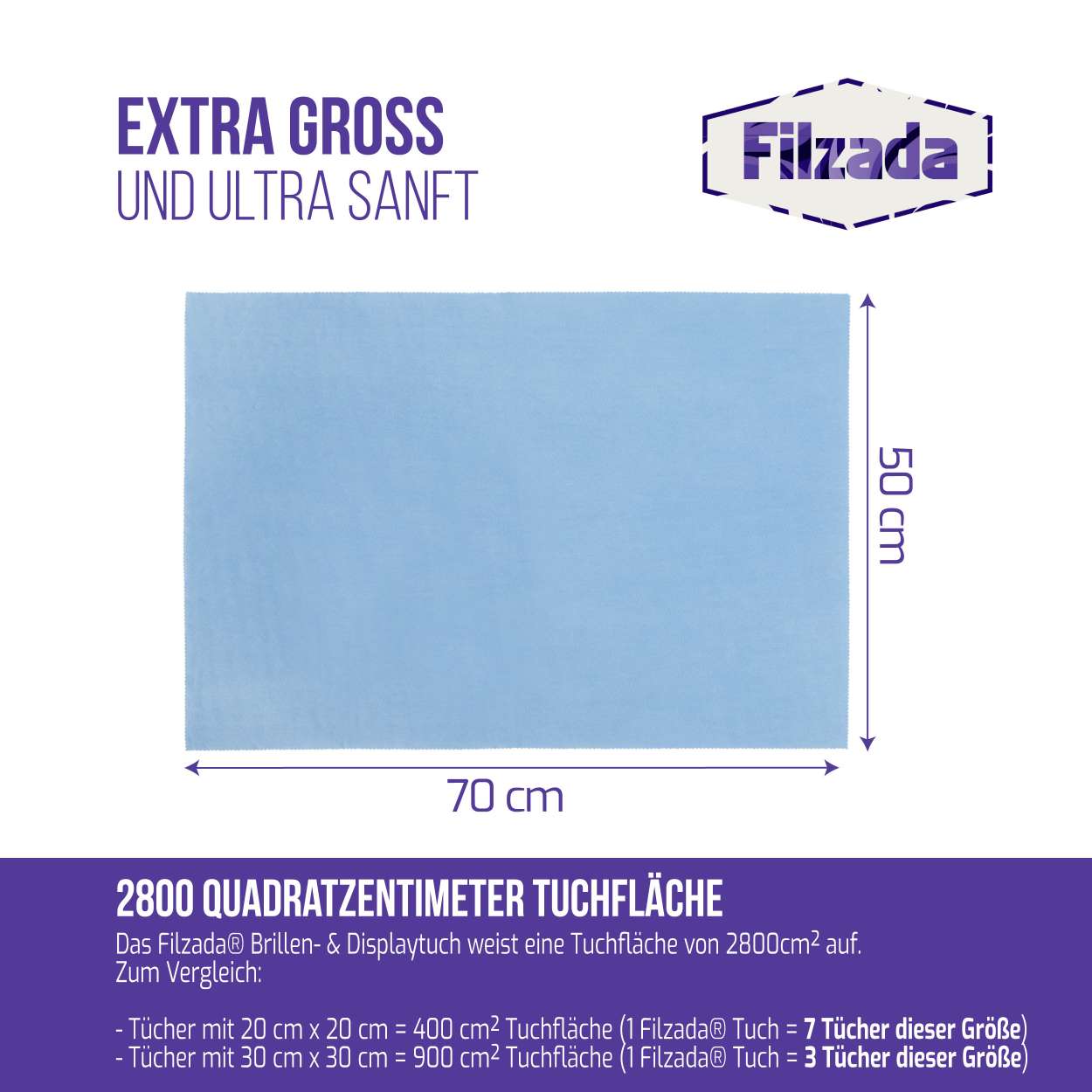 Extra groß: Jedes der Filzada Brillenputztücher besitzt eine Abmessung von 50 x 70 cm. Daher auch hervorragend zur Displayreinigung / Bildschirmreinigung geeignet.