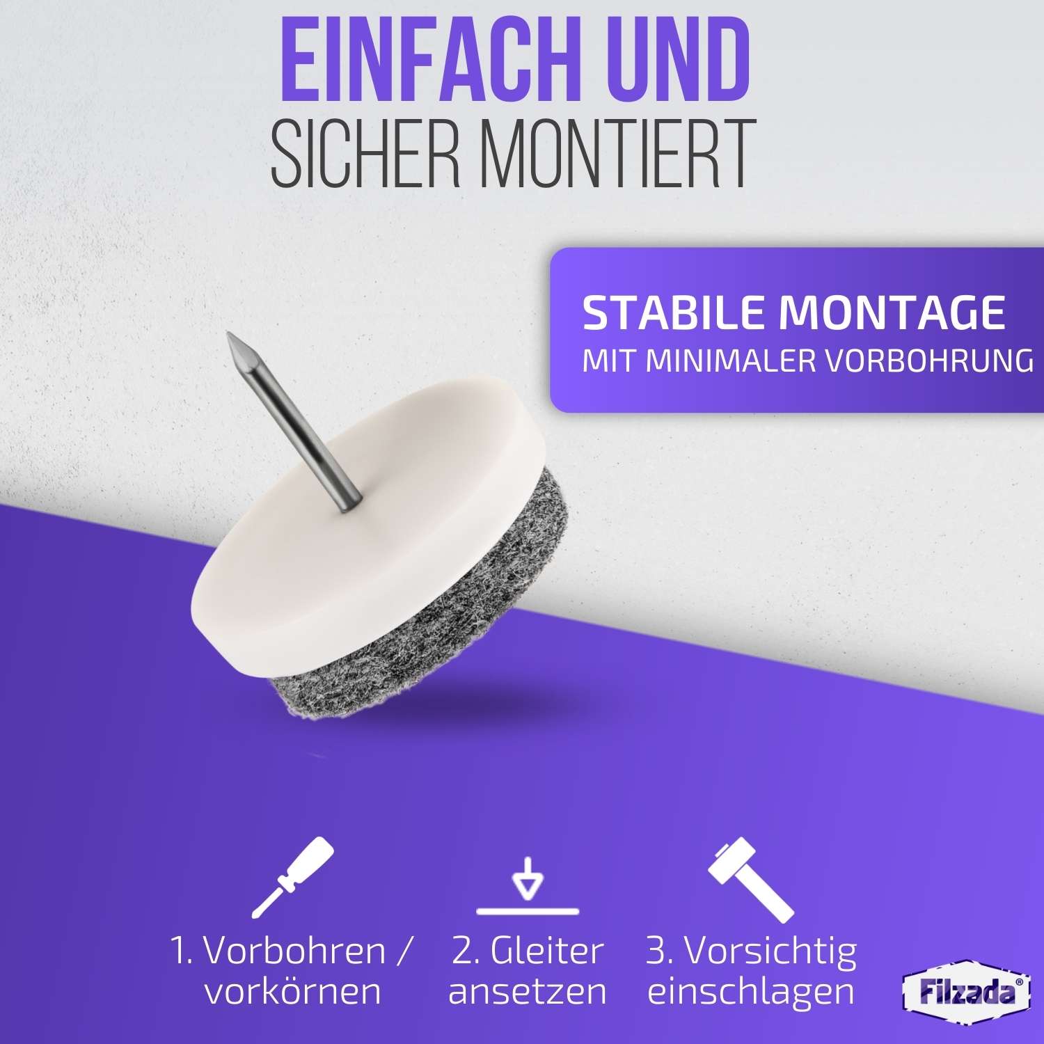 Mit diesen Filzgleiter sind Sie bestens ausgestattet - bestellen Sie jetzt Ihre Filzgleiter mit Nagel von Filzada®.