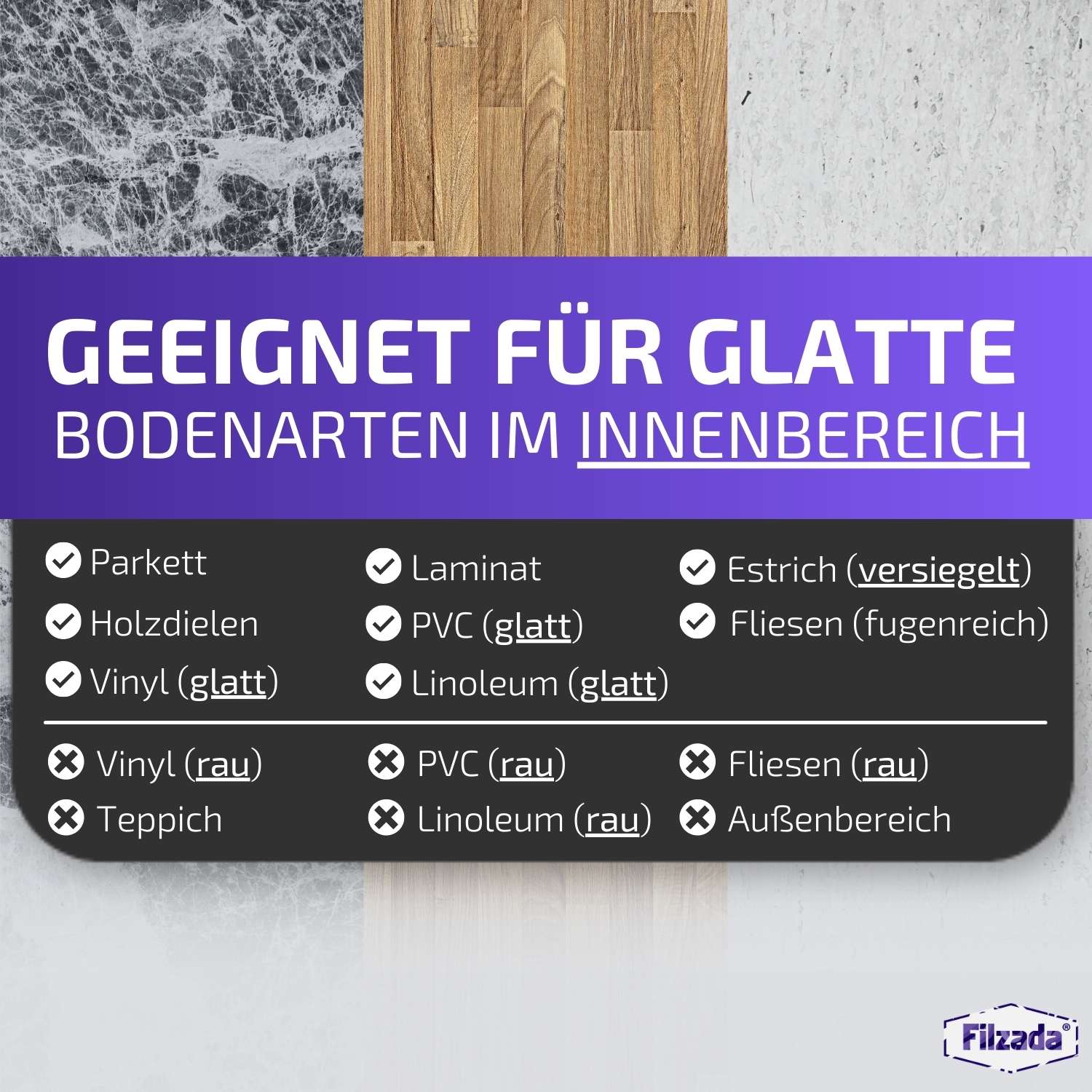 Selbstklebende Filzgleiter sind für folgende glatten Bodenbeläge geeignet: