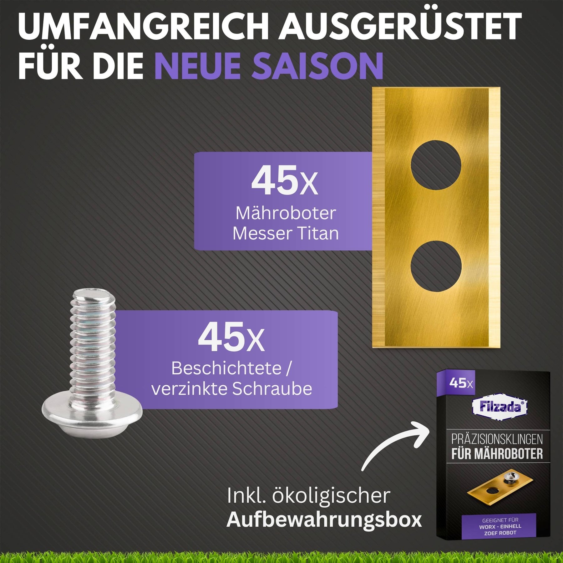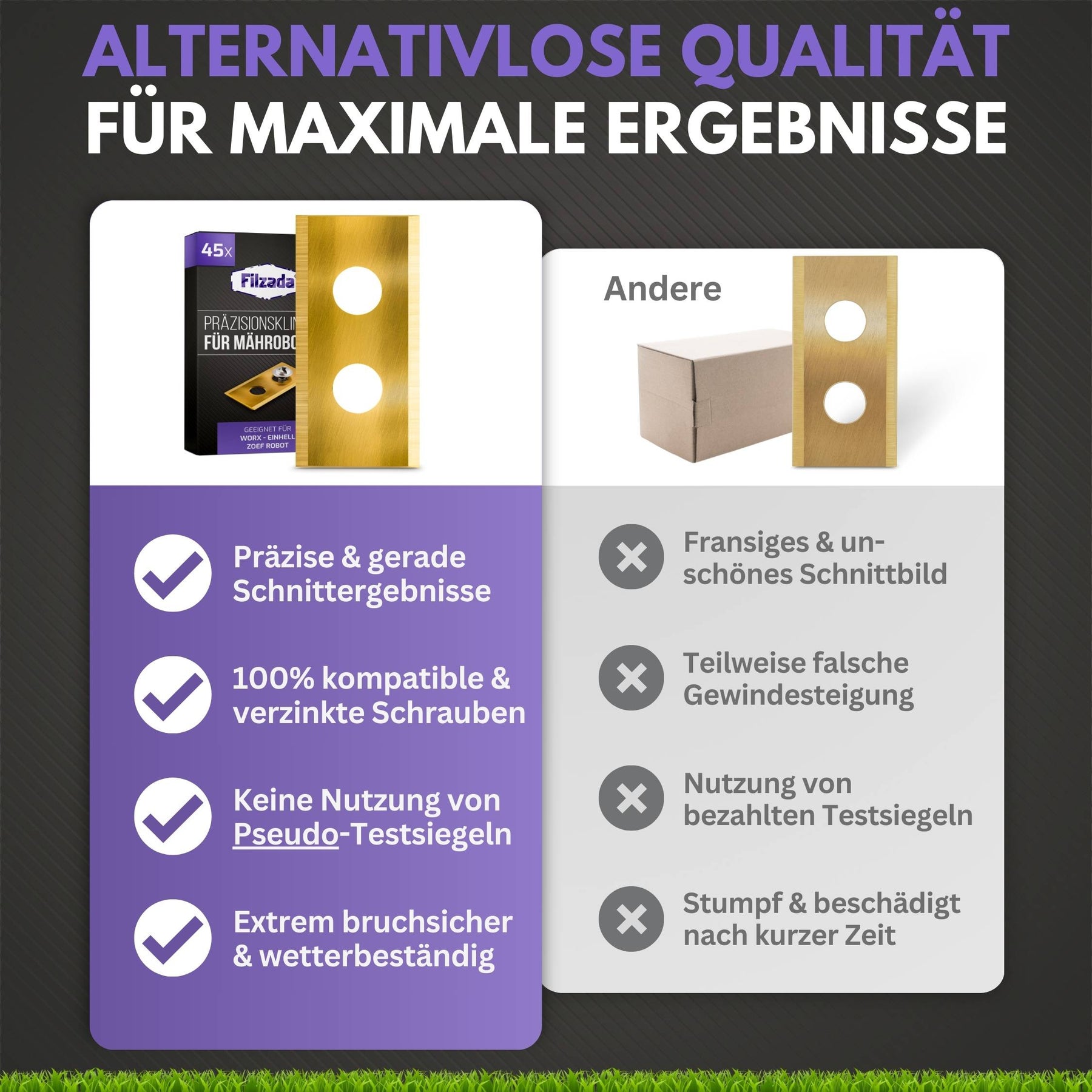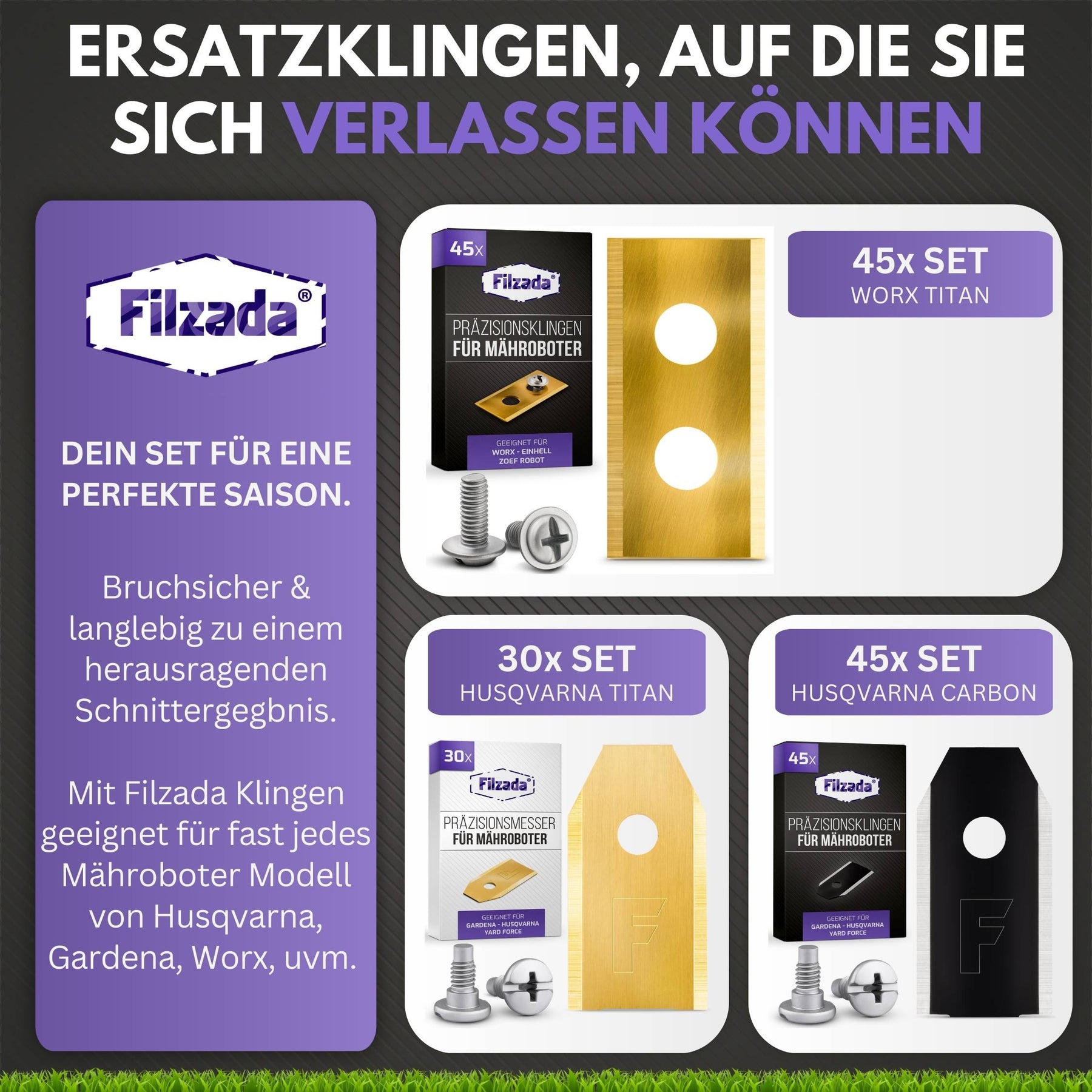 Mit diesen Mähroboter Messern sind Sie bestens ausgestattet - bestellen Sie jetzt Ihre Ersatzklingen geeignet für Worx von Filzada®.