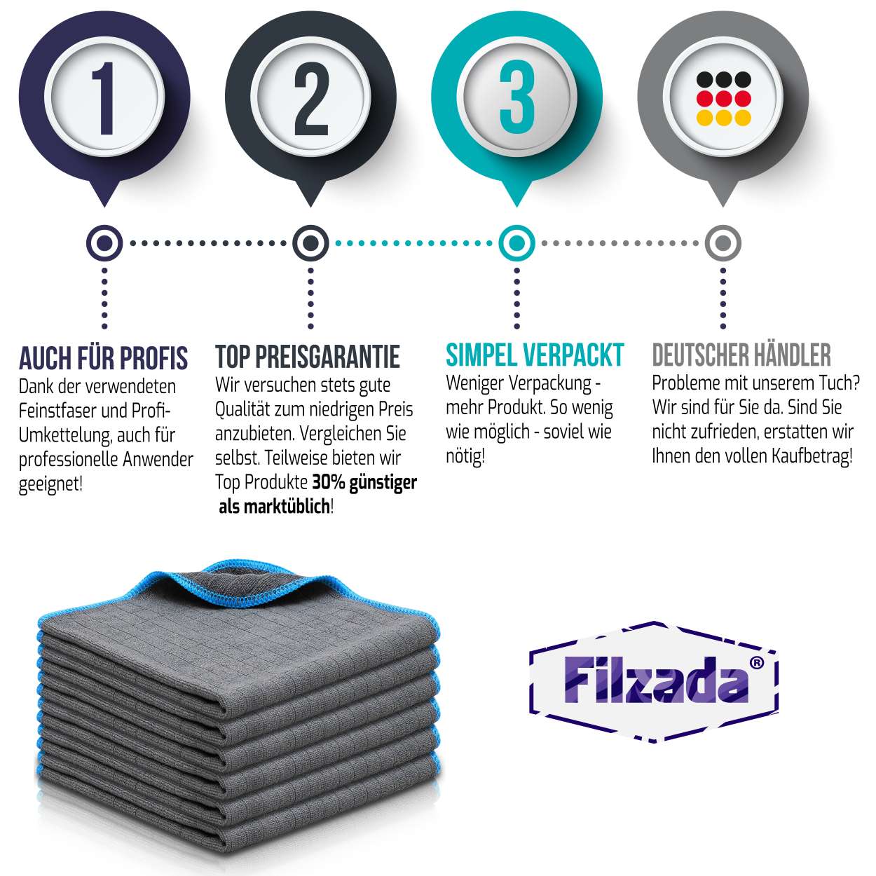 Mit diesen Mikrofasertüchern sind Sie bestens ausgestattet - bestellen Sie jetzt Ihren Satz Mikrofasertücher von Filzada®.
