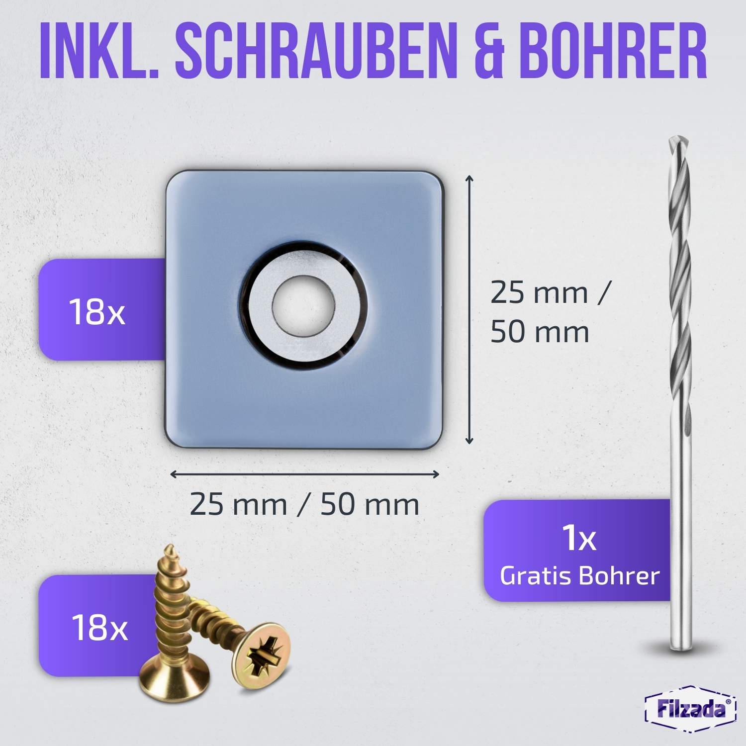 - Verfügbar in folgenden Größen: 25 x 25 mm, 50 x 50 mm
