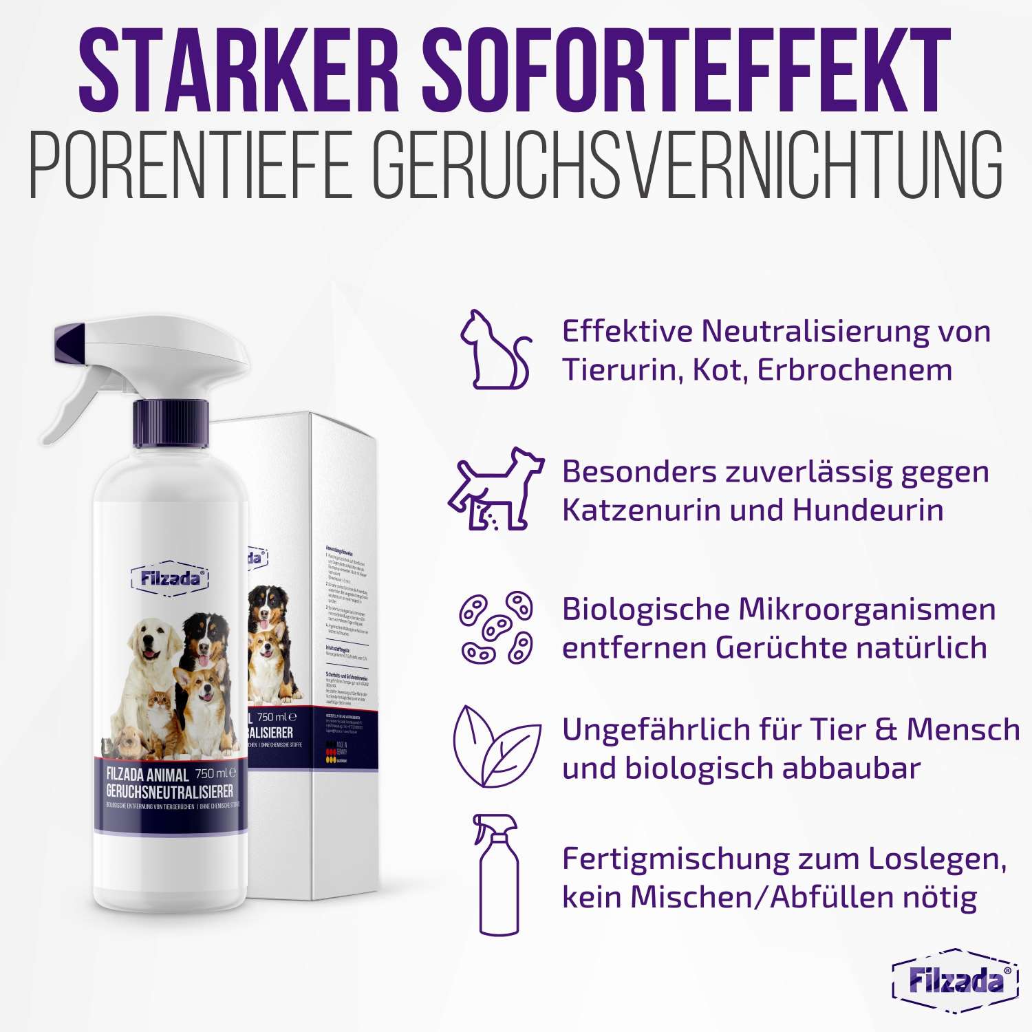 Mit diesem Geruchsentferner sind Sie bestens ausgestattet - bestellen Sie jetzt Ihren Tier Geruchsneutralisierer von Filzada®.